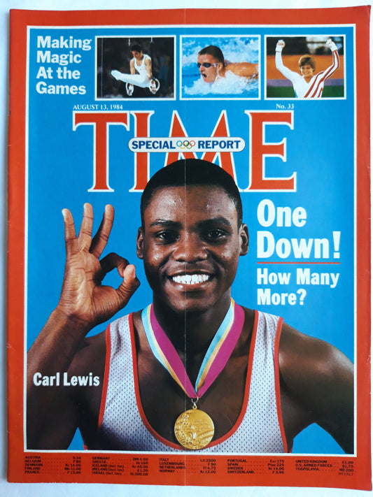 Time magazine One Down! How Many More? Carl Lewis Olympics 13.08.1984 August 1984