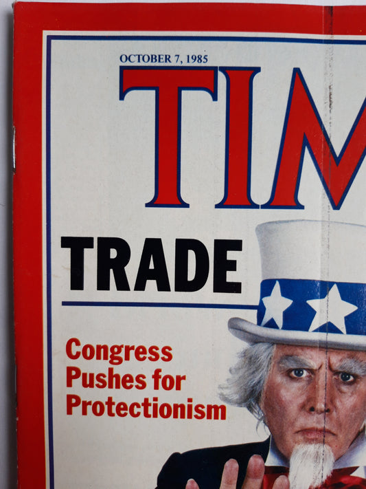 Time magazine Trade Wars Congress Pushes for Protectionism Ronald Reagan Holds First Agains Barriers Greenpeace France`s Watergate Widens Francois Miterrand 07.10.1985 Oktober 1985 No.40