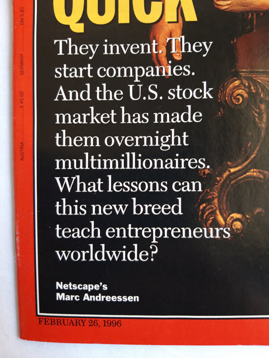 Time magazine How to get rich quick Netscape`s Marc Andreessen Euro: is your job safe? Chess: man vs. machine 26.02.1996 26. 26th February 1996