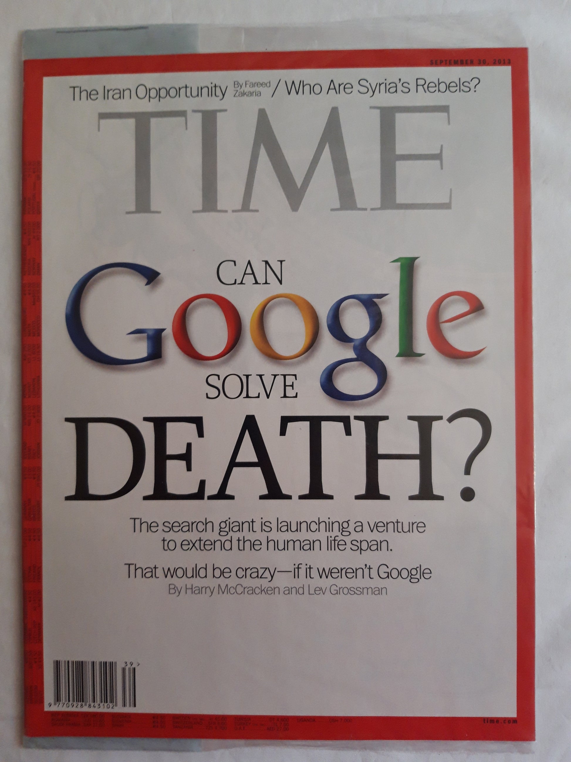 Time magazine Can Google solve death? The Iran Opportunity Who are Syria`s Rebels? Original packaging OVP Original verpackt 30.09.2013 September 2013